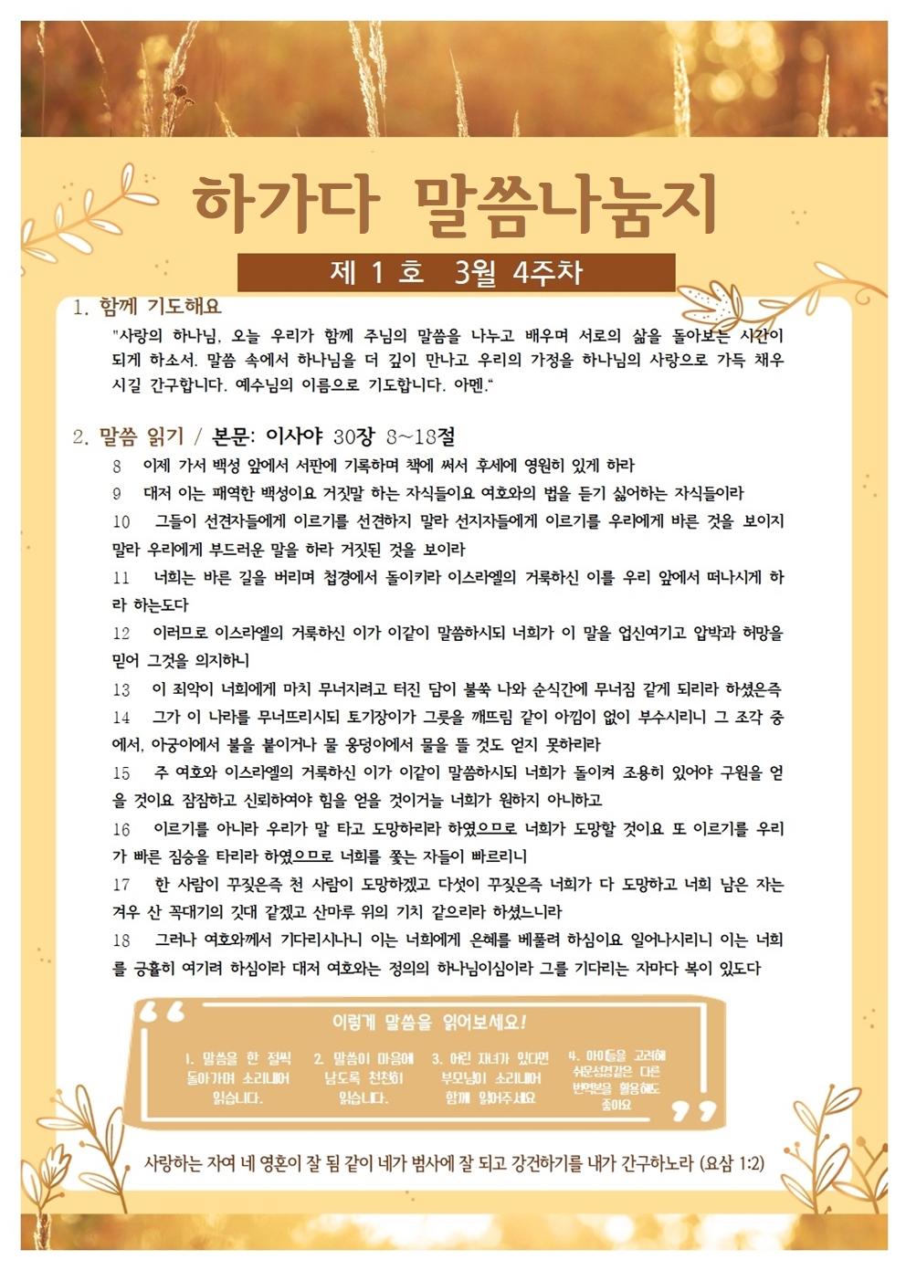 📖 말씀 해설: 이사야 30:8–18 (1주차 하가다)