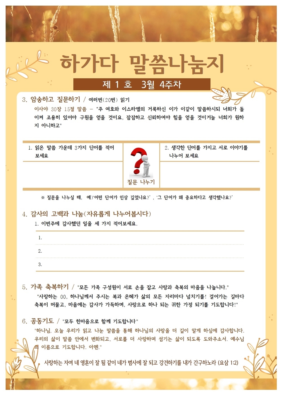 ✦ 주제: “돌이킴과 조용함이 너희의 구원이다” (사 30:15)